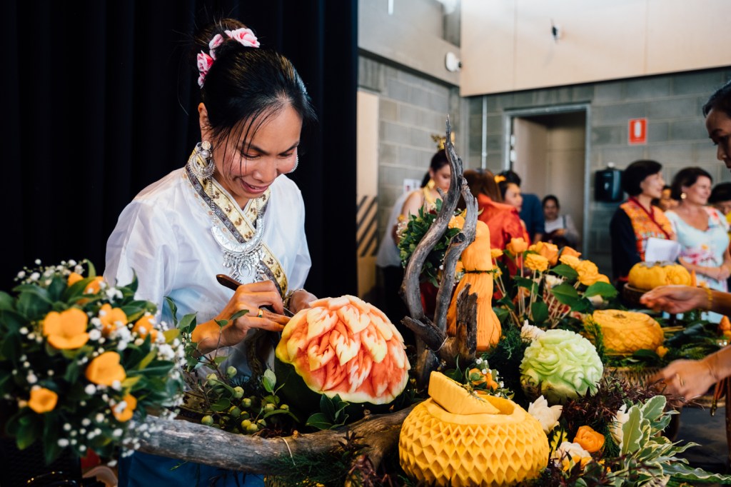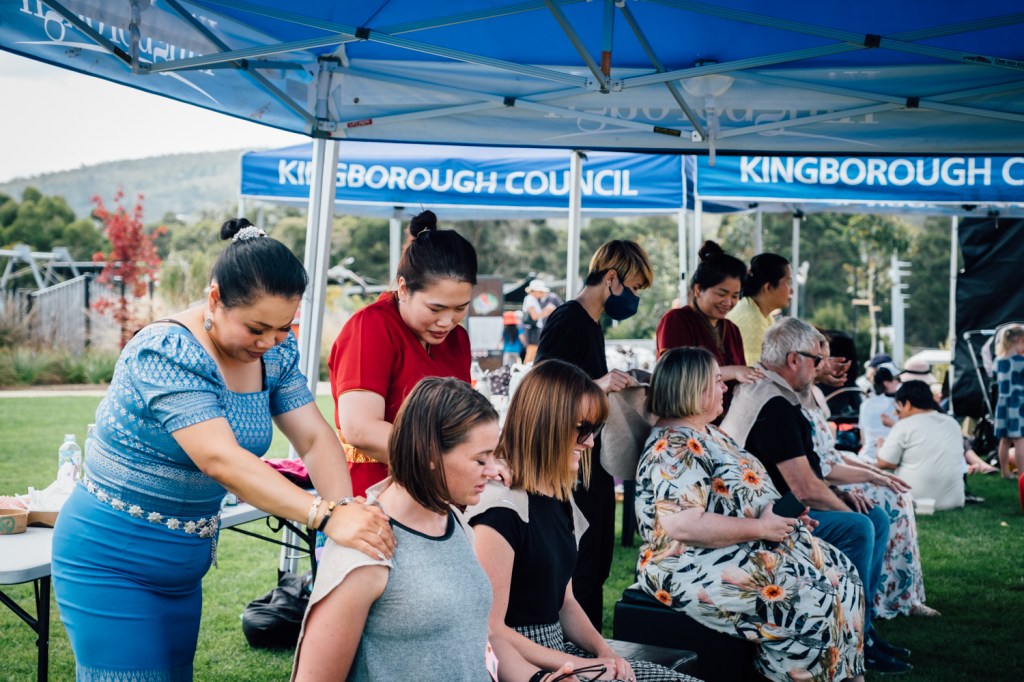 A beautiful fun-filled day in Kingston celebrating the upcoming Thai Songkran Festival (Thai New Year) that is normally held in April of every year. The festival was held on Sunday 5 March 2023 at the new Kingborough Community Hub where over 60 volunteers from the Thai community put together various food and activity stalls as well as lively cultural performances on a show for everyone to enjoy. It was a great turn out and we would like to thank you, everyone, who came to join us on that day. All proceeds of this event go towards the building of the new Pavilion/Meditation center at the Thai Buddhist Temple in Otago Bay.